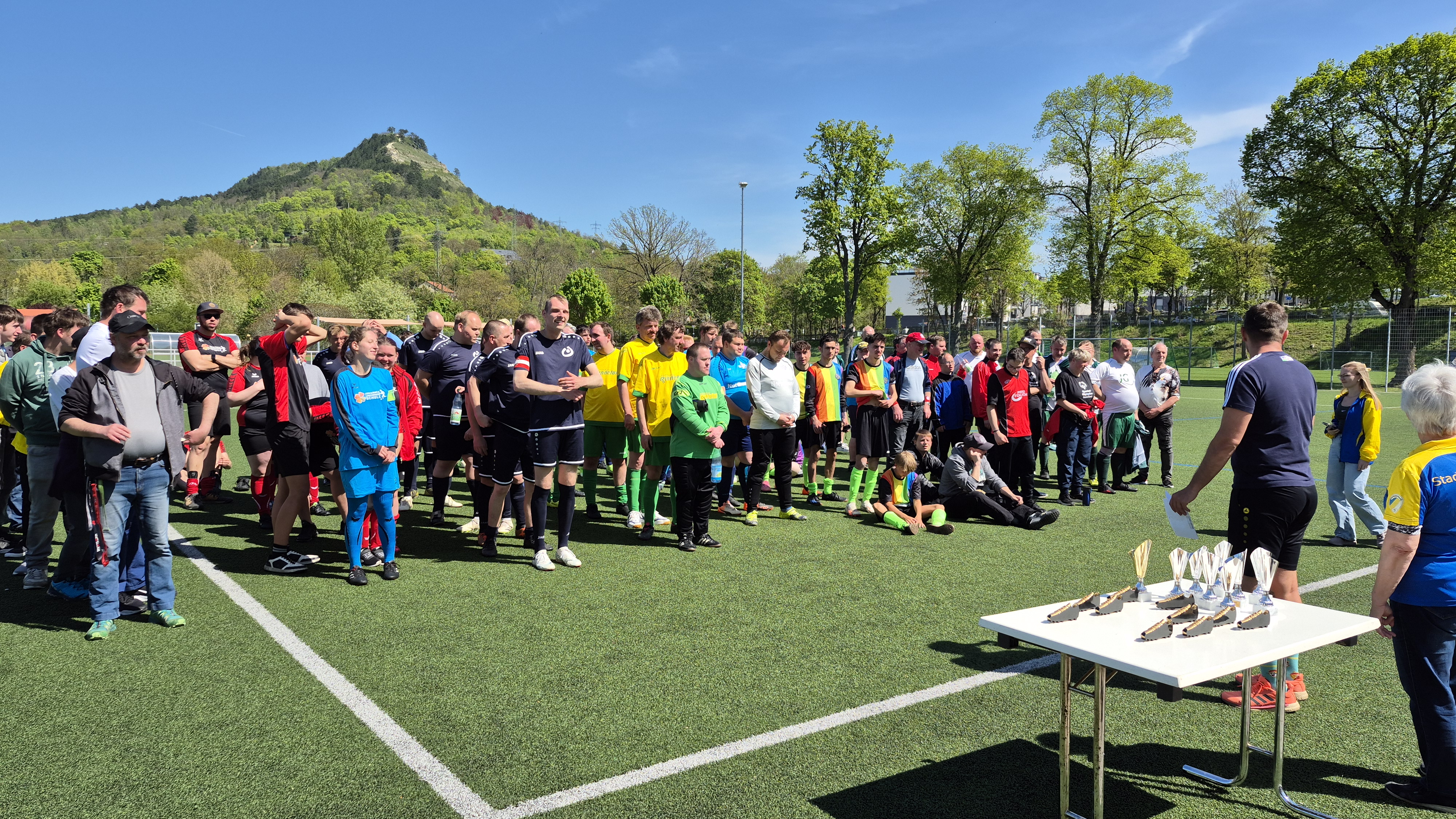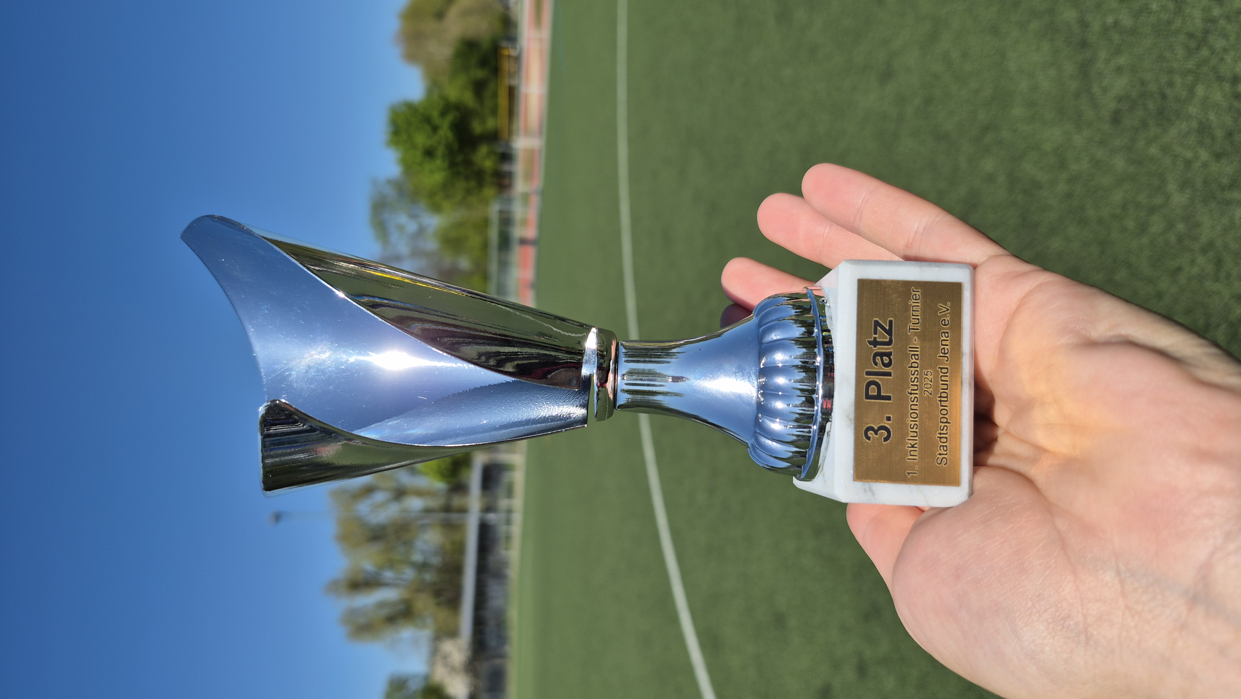 Am 28.04.2025 fuhren unsere Landenberger Fußballer*innen nach Jena zum ersten Inklusionsfußballspiel. 10 Mädels und Jungs spielten gemeinsam mit zwei Unified-Partnern in einem Team. Unified-Partner sind Sportler ohne geistige Beeinträchtigung. Das erste Spiel in der Klassifizierung konnte unsere Mannschaft mit einem 1:0 für sich entscheiden. Das zweite Spiel ging knapp mit einem 1:1 unentschieden aus. Am Ende der Klassifizierung gab es Punktegleichstand zwischen unserer Mannschaft und einer anderen. Somit ging es zum Neunmeterschießen. Alle behielten die Nerven und konnten am Ende das Schießen für sich entscheiden. Somit zogen Landenbergers für die Finalläufe in die erste Leistungsklasse ein. Nach einem stärkenden Mittagessen ging es dann wieder aufs Feld. Die Finalspiele hatten begonnen und unsere Mannschaft spielte stark. Wieder einmal bewiesen sie, dass sie zwar die Jüngsten aber keinesfalls die schlechtesten auf dem Platz sind. Am Ende mussten sie sich zwei sehr starken Mannschaften aus Werkstätten geschlagen geben. Der Pokal für den dritten Platz war ihnen sicher. Stolz und mit neuen Erfahrungen im Gepäck kehrten alle glücklich wieder nach Hause zurück.
