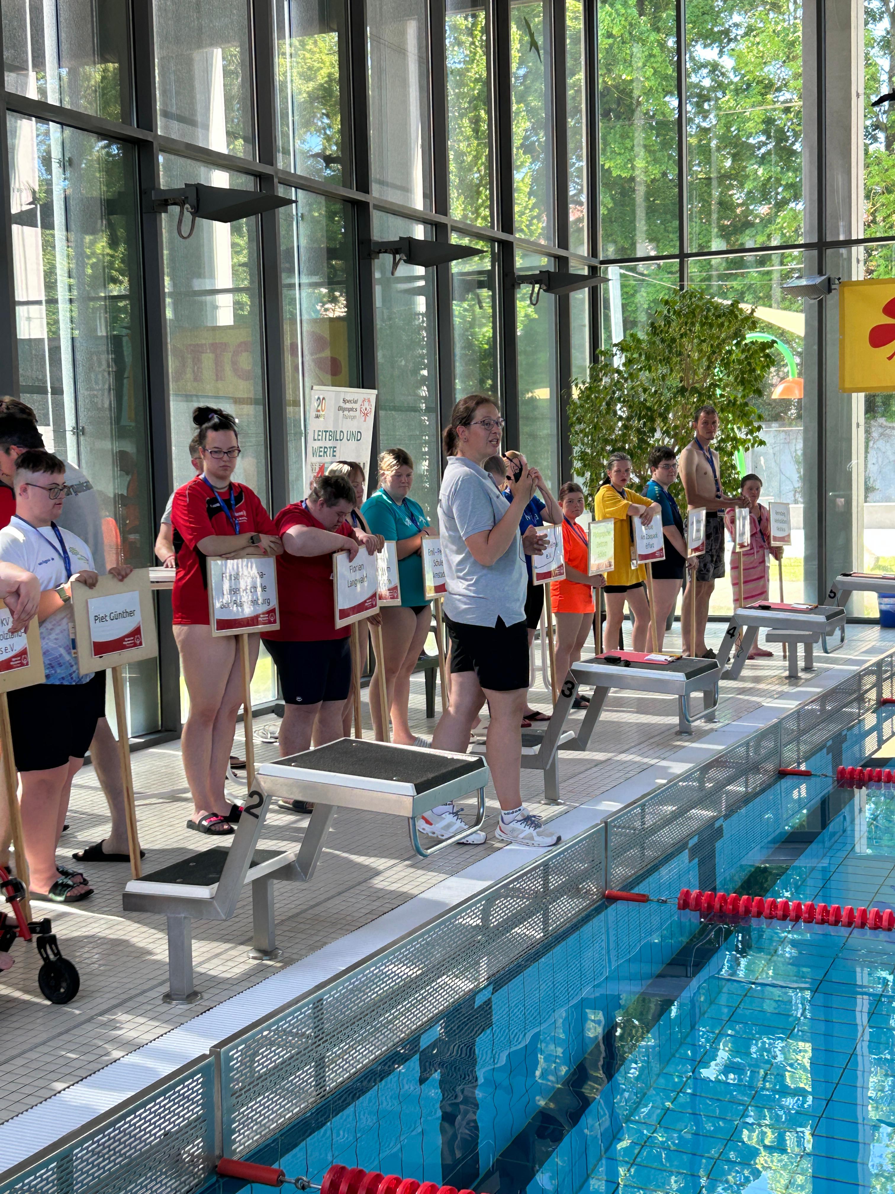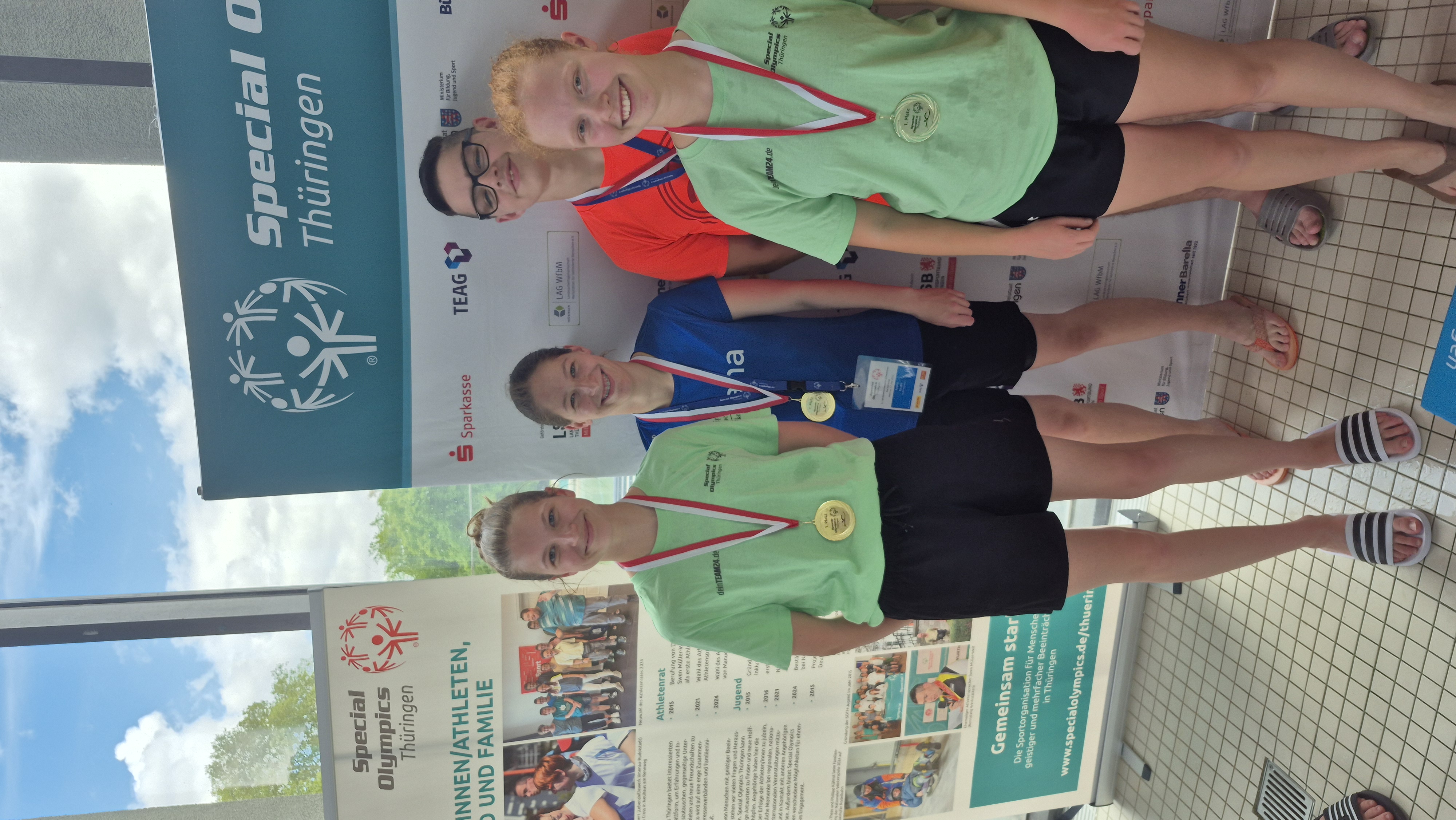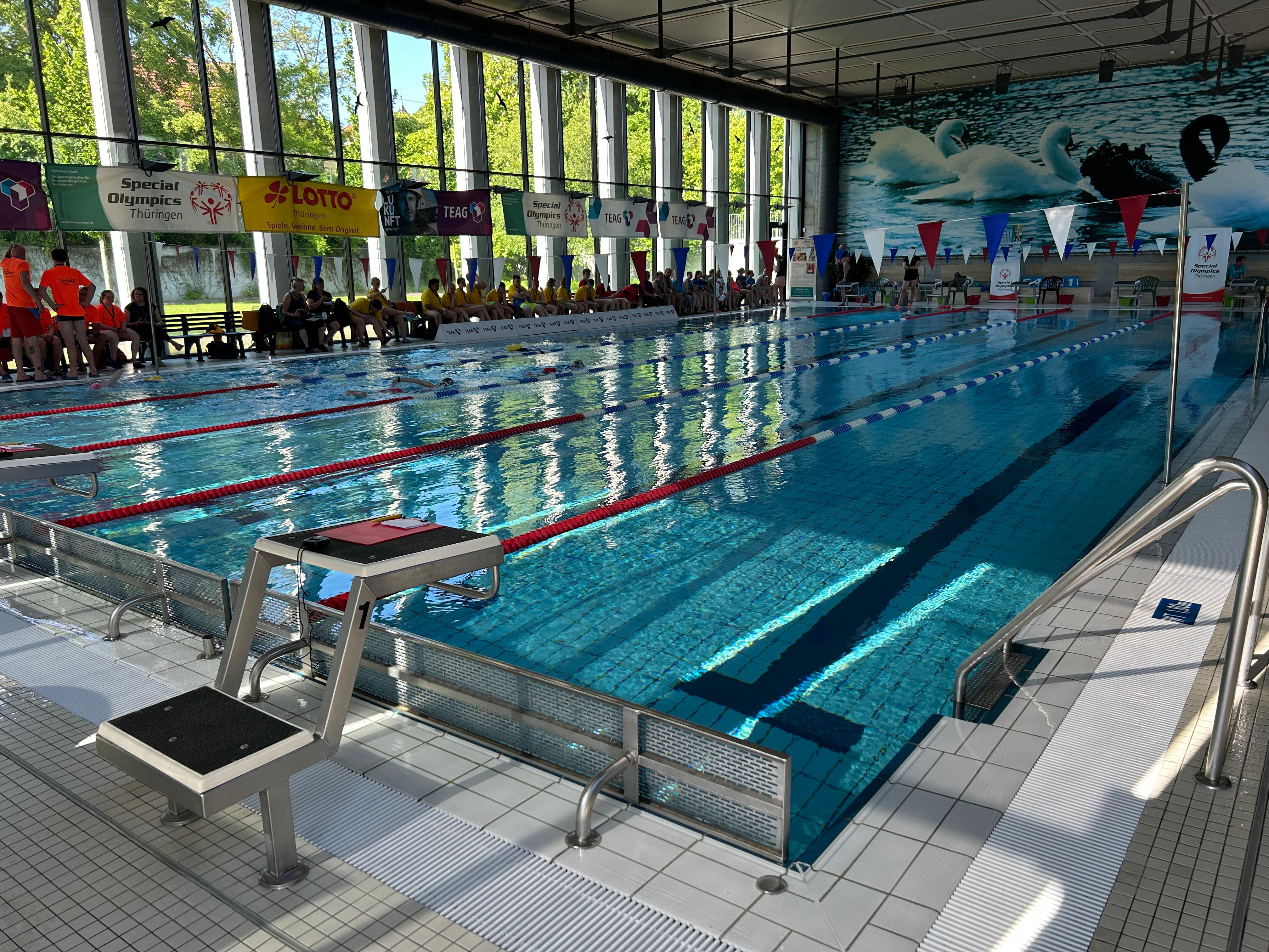 Am 17.05.2025 fand in Weimar der 5. Kurzstreckenwettbewerb von Special Olympics Thüringen mit großer Unterstützung durch die DLRG-Weimar statt. Unsere Schwimmer*innen waren natürlich mit am Start. 11 junge Athlet*innen schwammen an diesem Tag zu neuen Bestzeiten. Insgesamt gingen 84 Athlet*innen, 6 Unified-Partner*innen bei 156 Einzelstarts und 17 Staffeln an den Start. Dieser Wettbewerb ist der erste Anerkennungswettbewerb für die Nationalen Spiele 2026 im Saarland. Die weimarer Jungs und Mädchen gewannen 5 Mal Gold, 6 Mal Silber, 4 Mal Bronze, 3 Mal Platz 4, 1 Mal Platz 5 und 2 Teilnehmerschleifen. 3 weimarer Staffeln konnten sich den Sieg holen und eine Staffel gewann Bronze. Das war ein sehr guter Auftakt beim ersten großen Wettbewerb der Saison.
