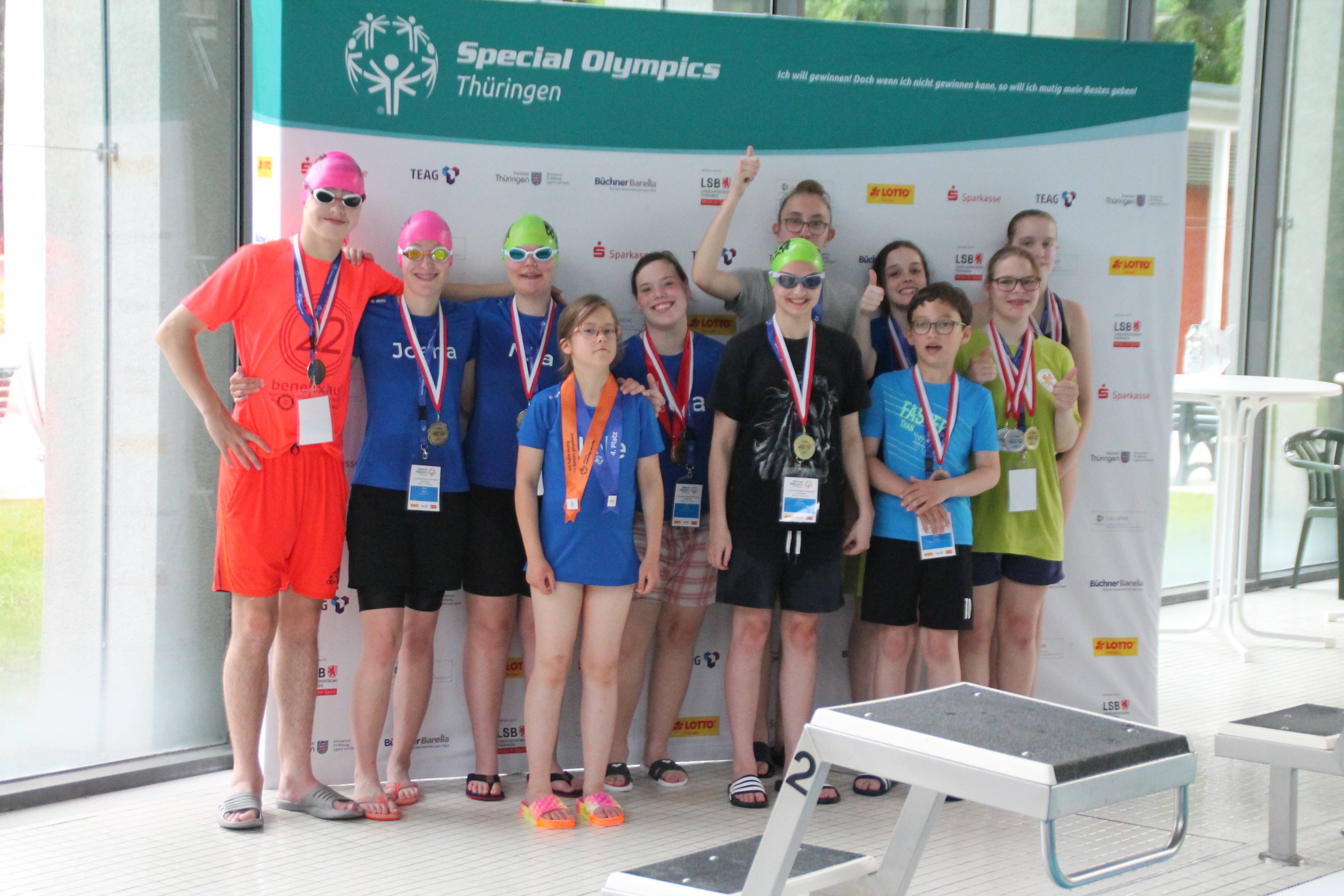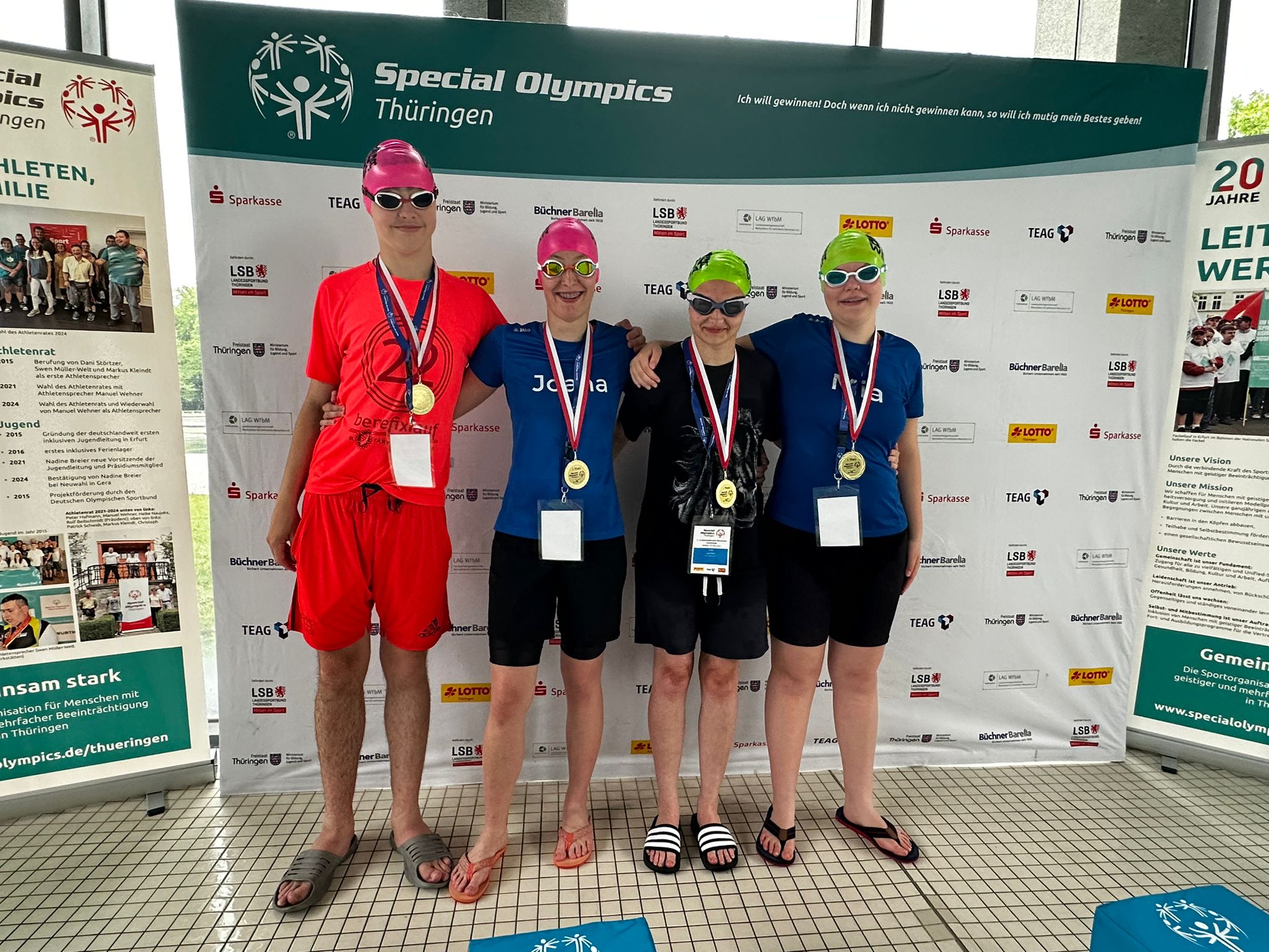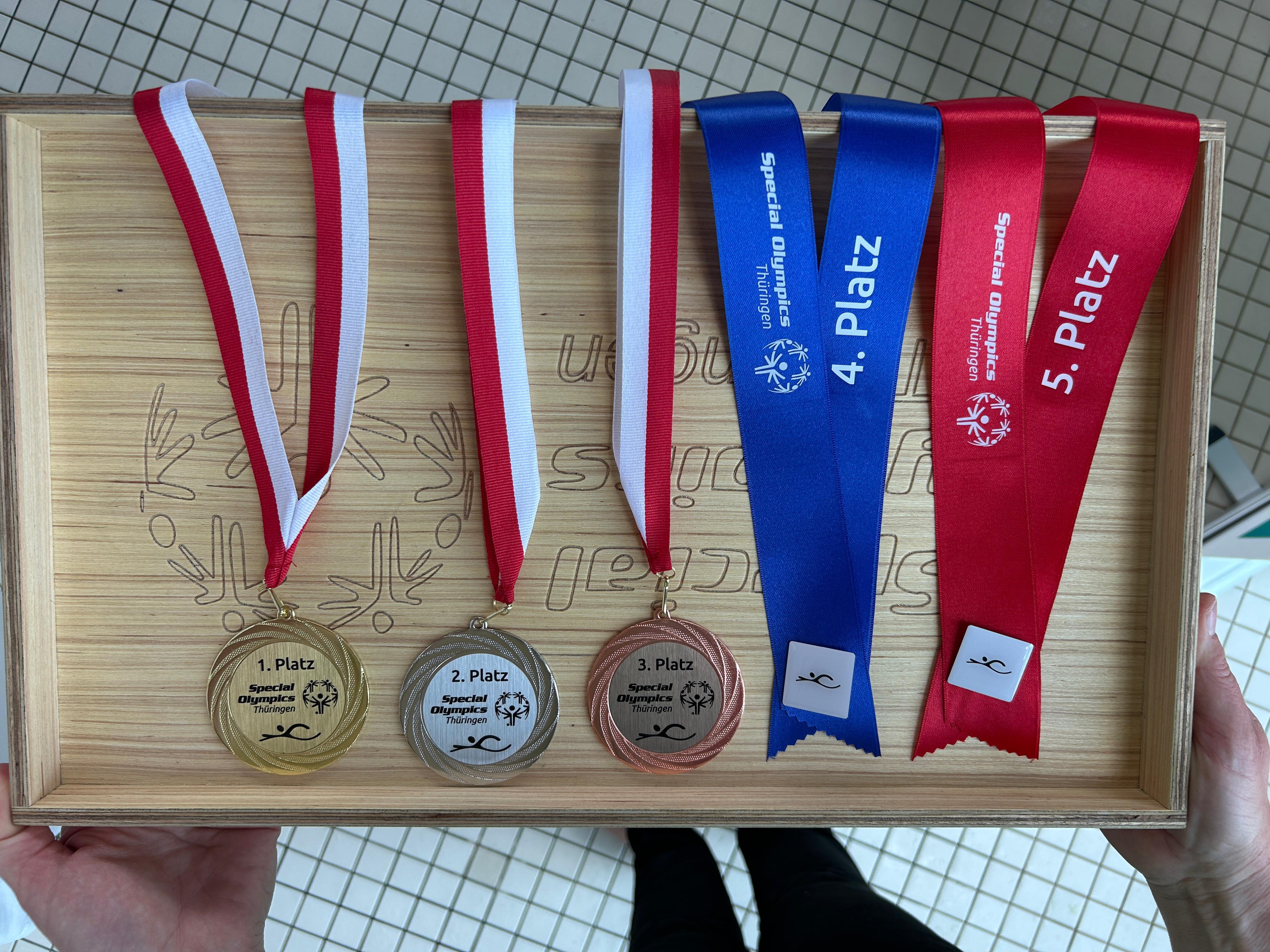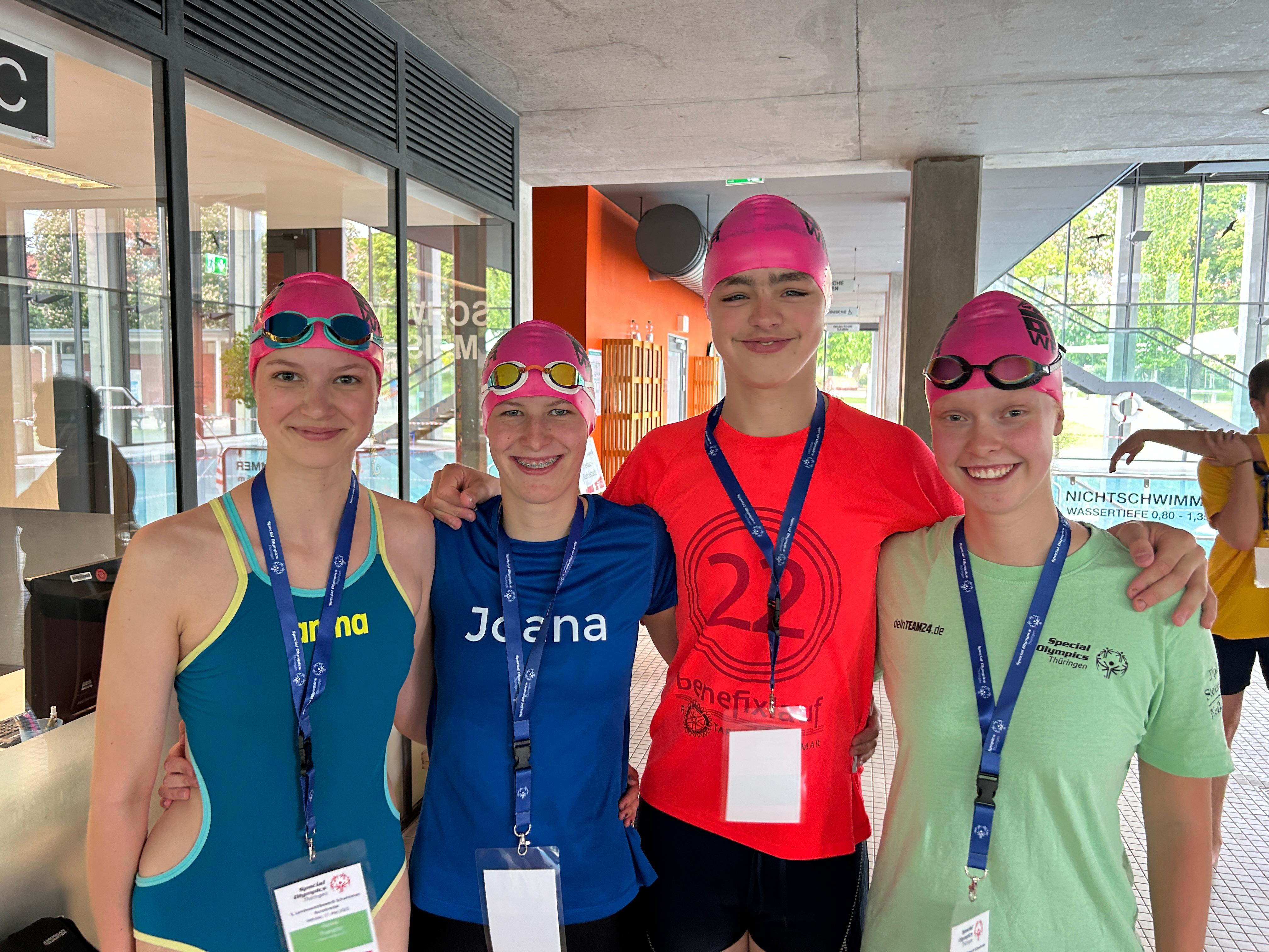 Am 17.05.2025 fand in Weimar der 5. Kurzstreckenwettbewerb von Special Olympics Thüringen mit großer Unterstützung durch die DLRG-Weimar statt. Unsere Schwimmer*innen waren natürlich mit am Start. 11 junge Athlet*innen schwammen an diesem Tag zu neuen Bestzeiten. Insgesamt gingen 84 Athlet*innen, 6 Unified-Partner*innen bei 156 Einzelstarts und 17 Staffeln an den Start. Dieser Wettbewerb ist der erste Anerkennungswettbewerb für die Nationalen Spiele 2026 im Saarland. Die weimarer Jungs und Mädchen gewannen 5 Mal Gold, 6 Mal Silber, 4 Mal Bronze, 3 Mal Platz 4, 1 Mal Platz 5 und 2 Teilnehmerschleifen. 3 weimarer Staffeln konnten sich den Sieg holen und eine Staffel gewann Bronze. Das war ein sehr guter Auftakt beim ersten großen Wettbewerb der Saison.